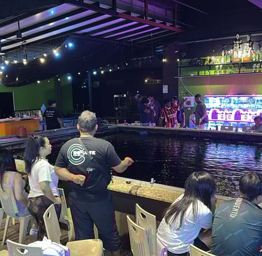 The Prawning Pond offers a carefully designed environment that enhances the fishing experience. The facility boasts several spacious fishing spots, allowing individuals, families, and friends to engage in a leisurely and fun activity together. The welcoming atmosphere is ideal for team-building events, allowing colleagues to unwind and strengthen relationships while sharing the excitement of catching prawns. The pond's late-night operation hours ensure that guests can enjoy this activity under the stars, creating a magical ambiance that amplifies the overall experience.